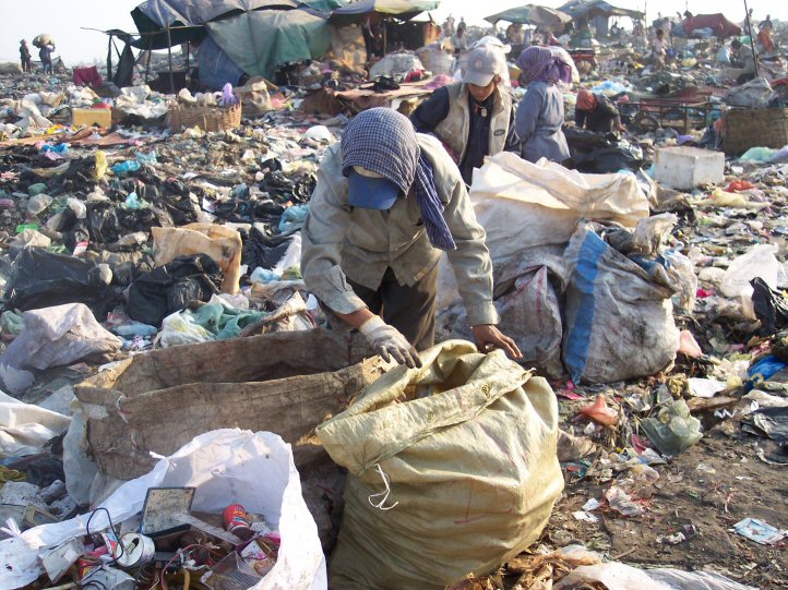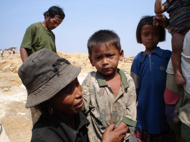 Des familles entières issues des campagnes cherchent dans cette décharge à ciel ouvert et dans une odeur pestilentielle, un moyen de subsistance.Pour un ½ dollar par jour, ils travaillent nuit et jour dans ce marécage d’ordures en putréfaction.Nombreux sont ceux qui n’en sortiront jamais.Souvent atteints de maladies graves, ils n’ont pas les moyens de se soigner