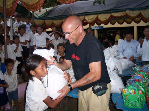 Autour de Phnom Penh, 2 personnes entièrement bénévoles, parcourent les campagnes pour distribuer de l’aide auprès des enfants des villages trop éloignés et pas assez importants pour les grandes ONG. Ils apportent aux enfants aides et soins