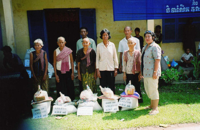 Après les enfants, nous aidons aussi les personnes agées isolées qui n’ont plus aucune famille pour les soutenir et sans ressourse. Nous prcédons à une distribution de riz auprès de certaines d’ elles et vérifions leur état de santé.